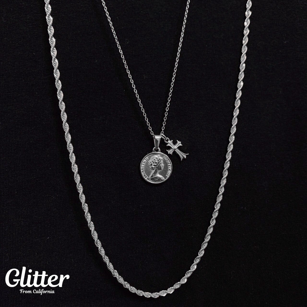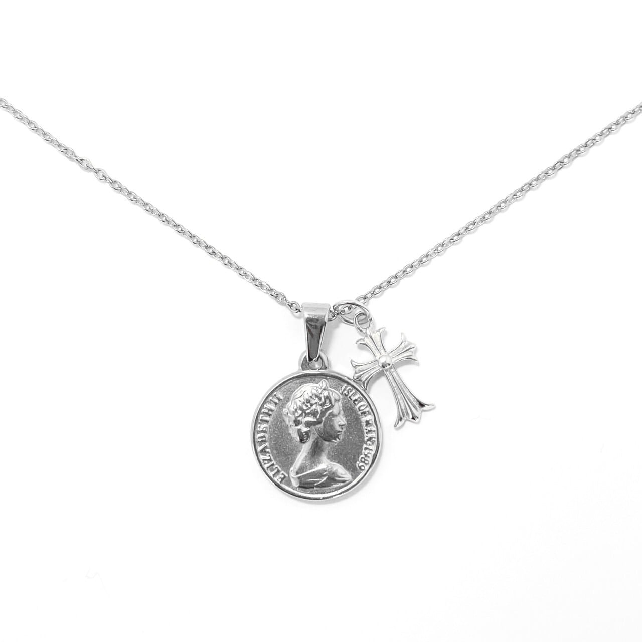 18kgp Coin & Cross Necklace 【SILVER】