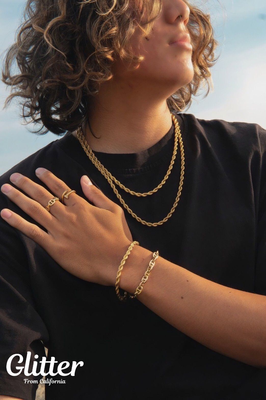 18kpg Diamond Cut Rope Chain 【5mm/GOLD】