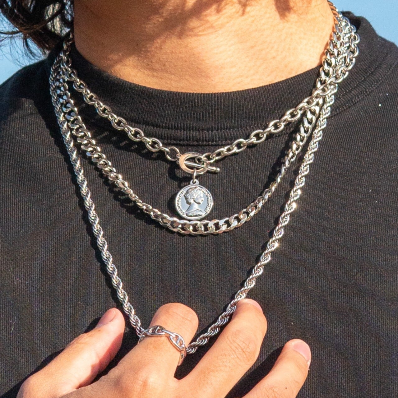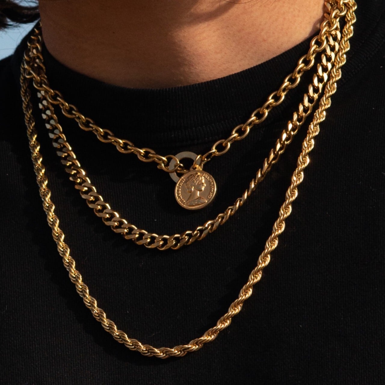 Model Wearing 3-Pieces Necklace Set