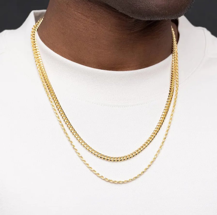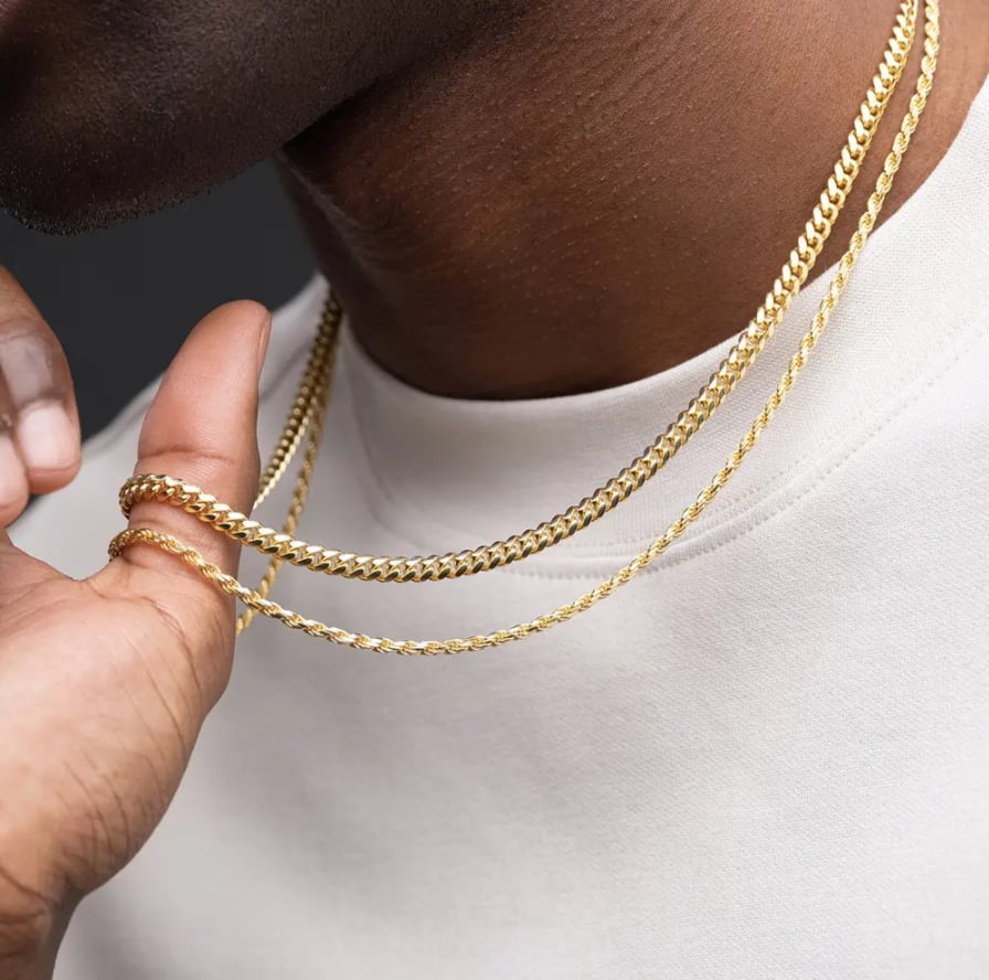 Rope chains and Miami chains are essential items.